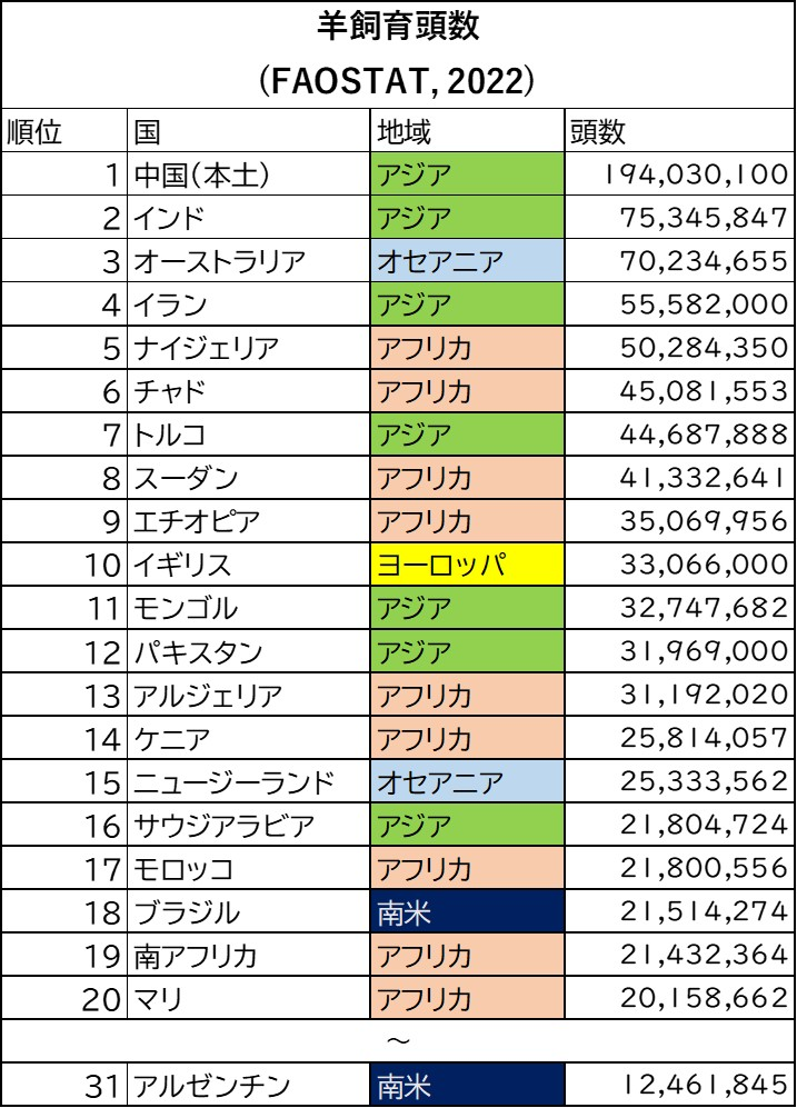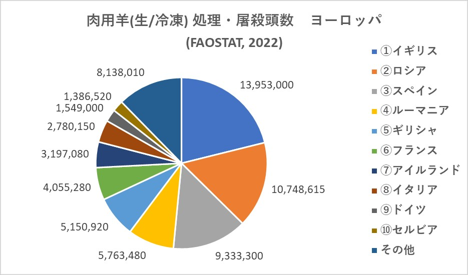 - ヨーロッパでは、 イギリス→ロシア→スペイン(メリノ種←羊毛って言われてたけど肉用もある)