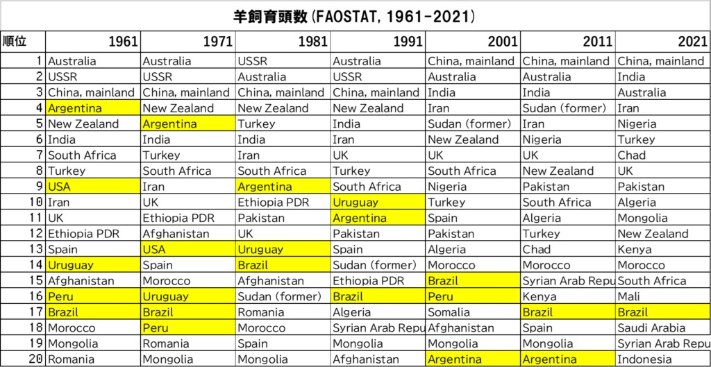 - 羊肉、61 71 81 91年 とソ連は世界トップ