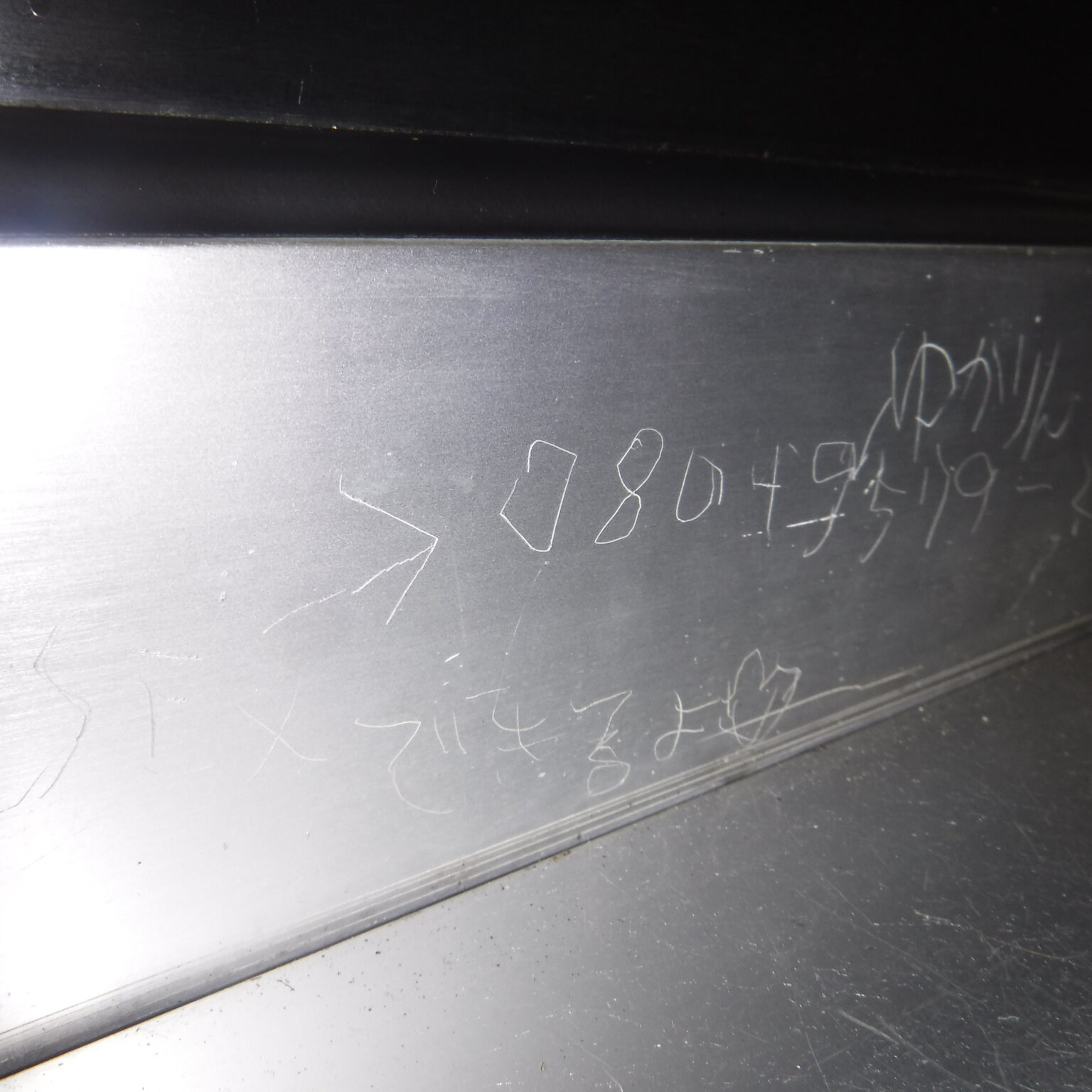 そんな中、ふと電車窓サッシを見ると、おや、出会い厨の電話番号が書いてありました。