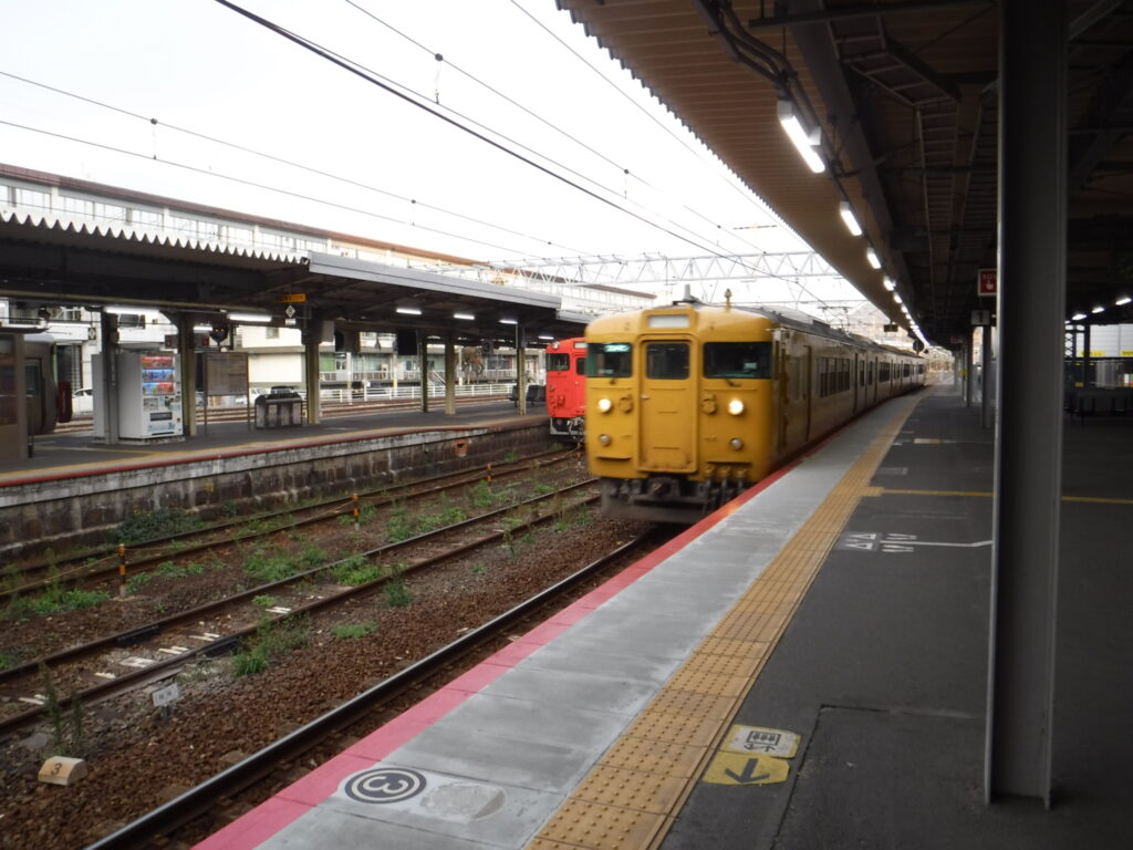 岩国に到着後すぐに、接続列車の18:14岩国発の新山口行きに乗車。ここらへんになってくると半分くらいの時間は電車の中で寝ています。