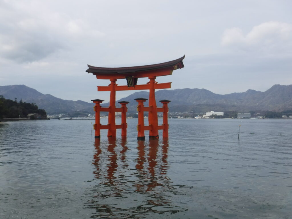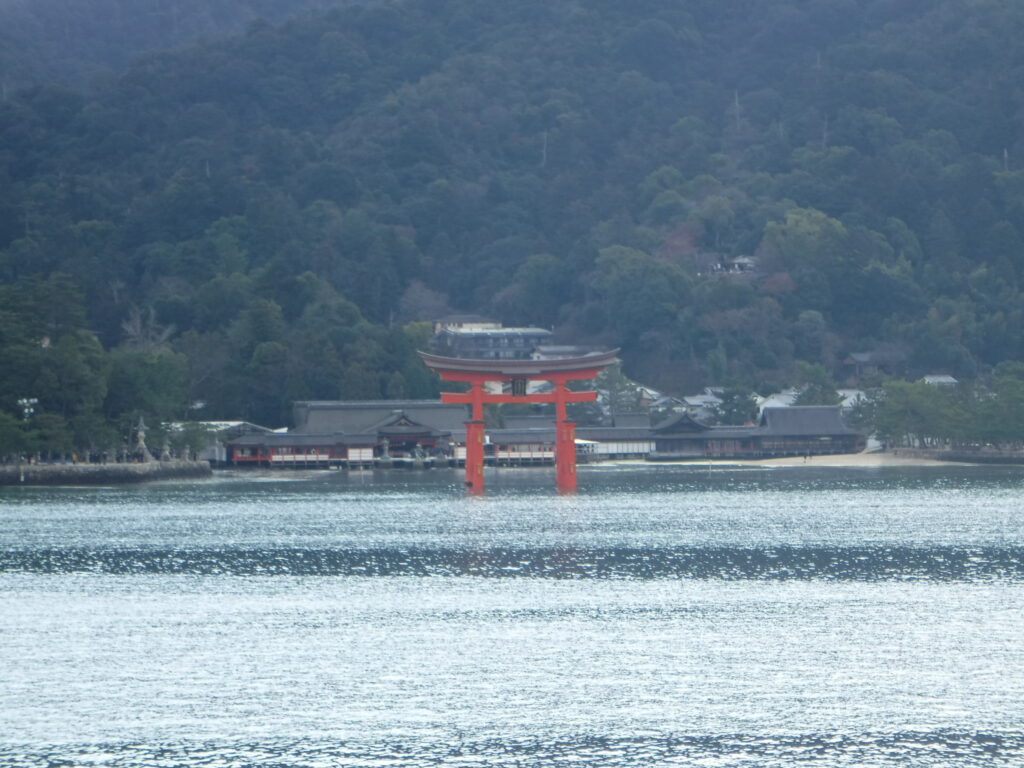 上の写真はJR宮島フェリーから撮った厳島神社。満潮気味。