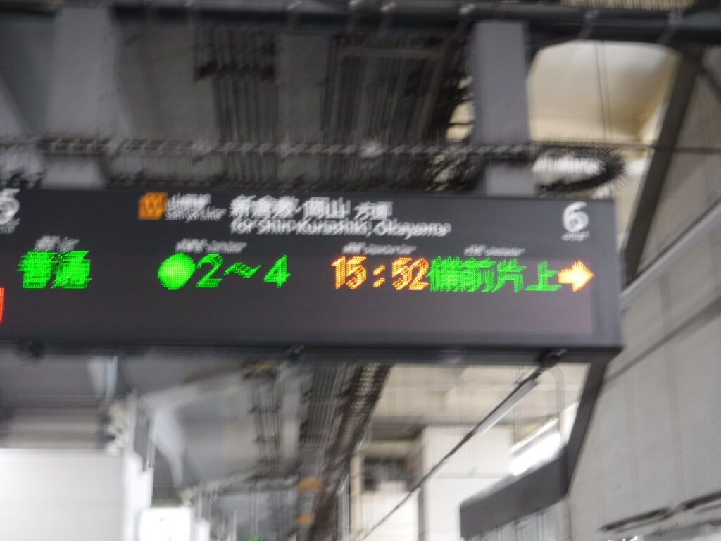 13:40ごろに岡山着。岡山土産を爆速で買って、13:50岡山発の三原行きに乗車。