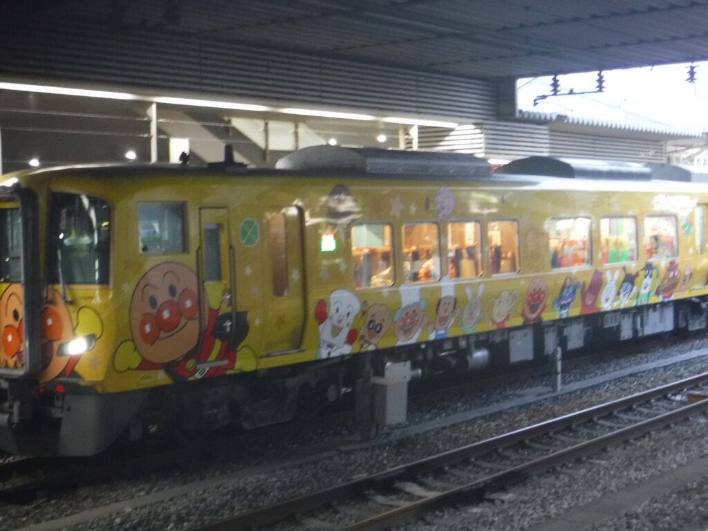 岡山駅、道中見たうちで最大のハブ駅です。いろんな路線の普通・快速・特急が入り混じっていました。高知に行く特急もあって、ちょっとびっくりしました(岡山と高知が電車で1本なんて思わなかったです)。あとアンパンマン列車も。