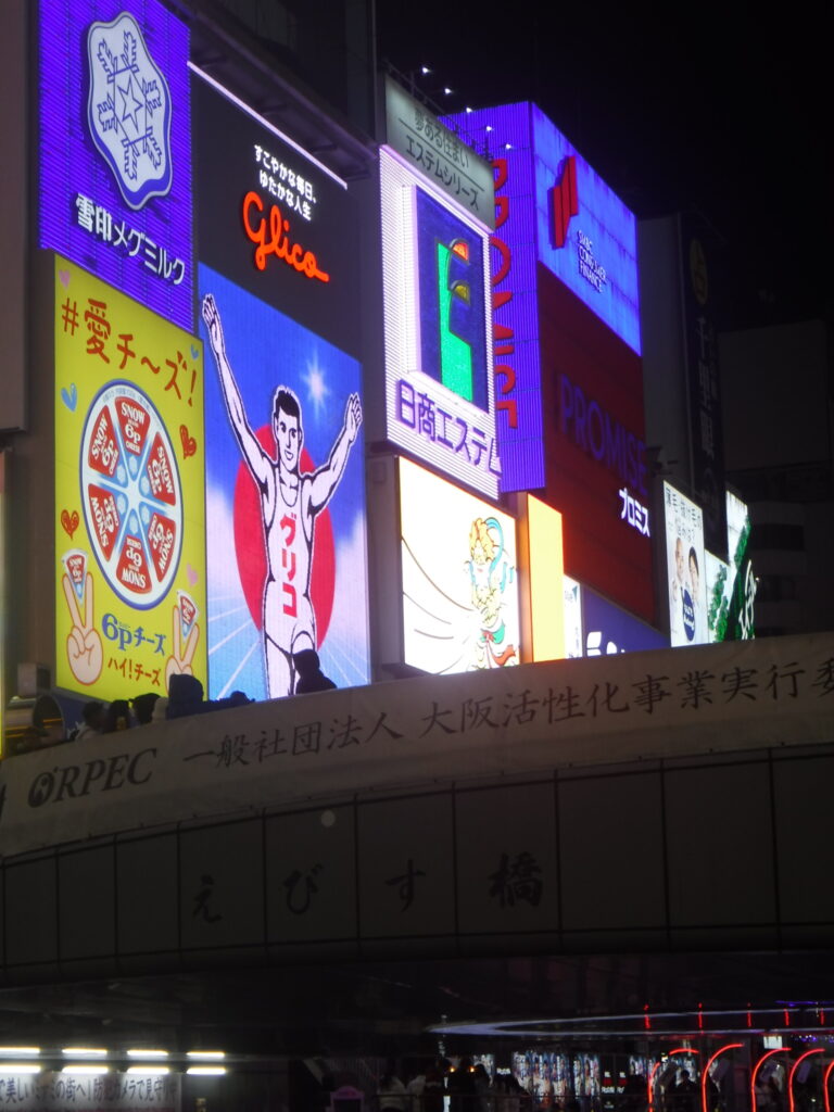 ご飯食べた後、グリコの看板と、去年話題になったえびす橋を見に行きました。