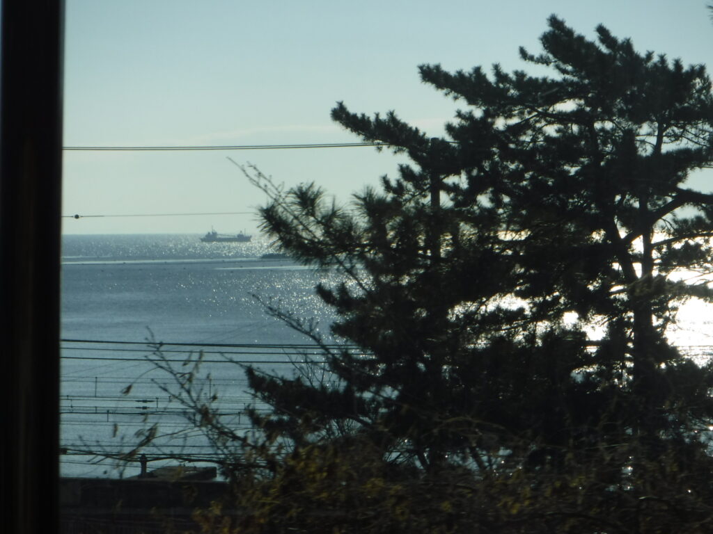 伊勢物語などの古歌にも詠まれた須磨の浦です。新快速とは違って各駅停車なので、こういった風光明媚な場所をゆっくり見れてよかったです。