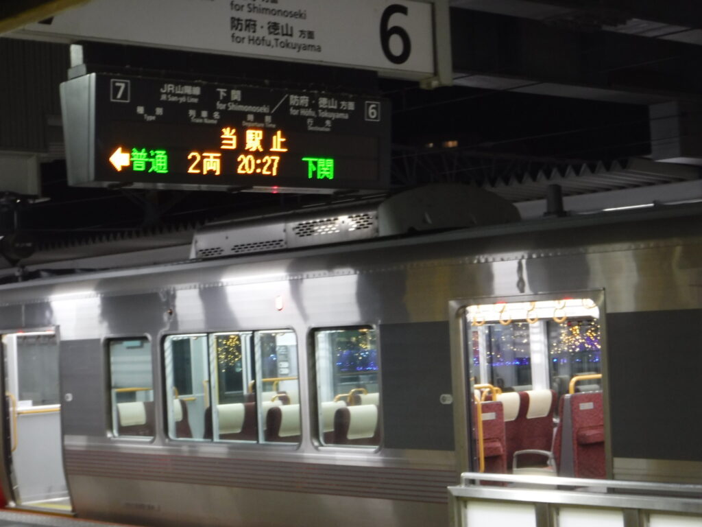 そして20:27新山口発の下関行き。なんか山口県在住の同級生が乗っていたような気がしたのですが、きっと気のせいですよね?