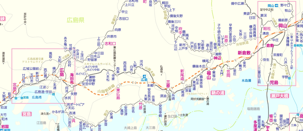 なかなかちょこちょことしか進まず、もどかしい感じです(広島に途中下車含めて6時間弱います)。