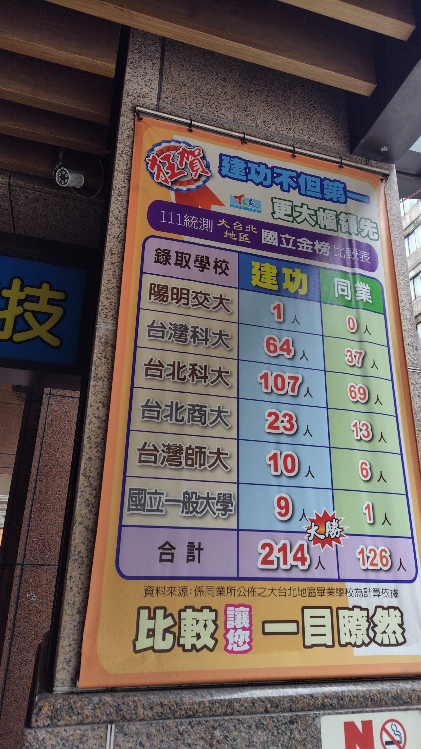 本日の写真は台湾の塾の合格実績です。「狂賀」好き。