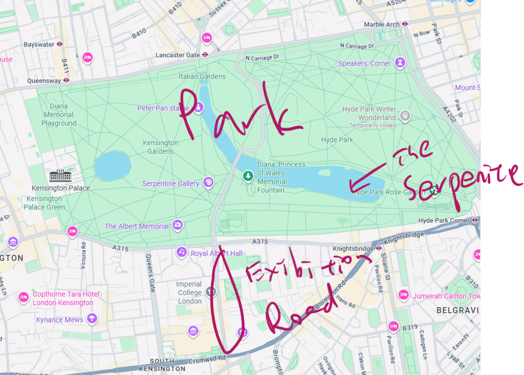 the Serpeniteというのは、Hyde Park内にある三日月状の池のことだ。