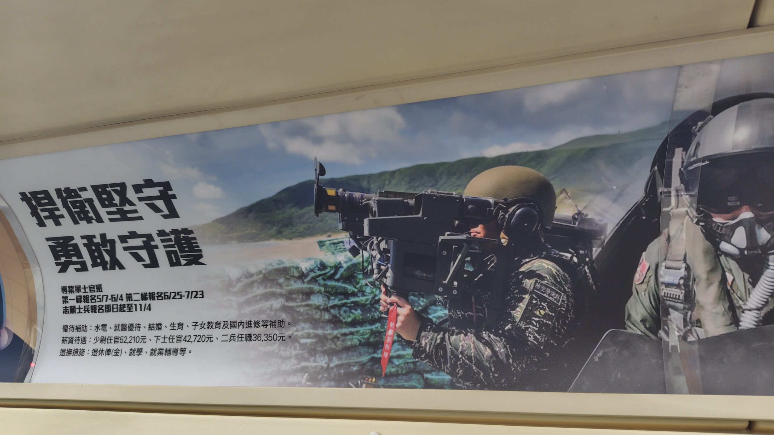本日の写真は台湾の電車内に掲示されていた募兵ポスターです。そういえば今年は戦後80年ですね。数字がマイナスになりませんように。