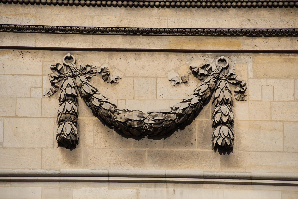 ↓本来のfestoon(花綱)の例。花などを編んでつるした装飾で、それを模した建築装飾も指すらしい。
