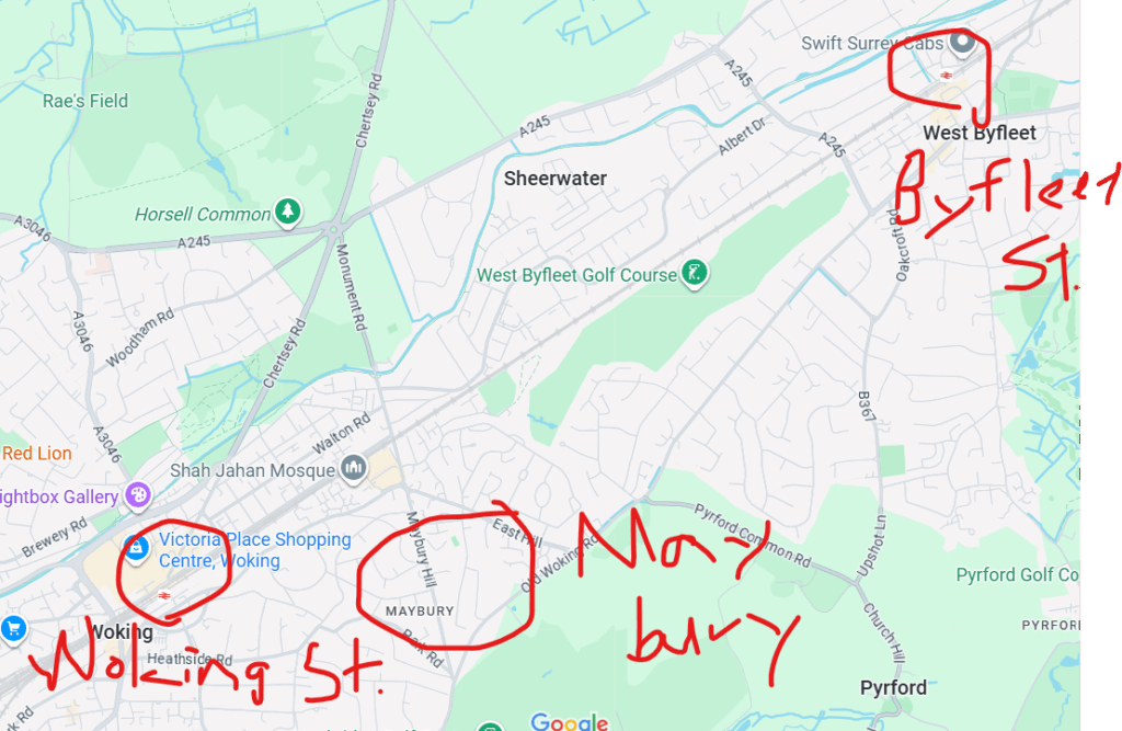 ウォーキング駅のロンドン側の線路はまだ修理中だったので、バイフリート駅で降り、メイベリーに向かって進んでいった。わたしと砲兵が騎兵隊と話した場所を過ぎ、嵐雲の中で目の前に火星人が現れた場所を通り過ぎた。ここで、好奇心に突き動かされて、道から外れて赤い水草の中を探すと、ねじ曲がって壊れたあの馬車が現れた。馬の白骨が散らばり、かじられていた。しばらくの間、この残骸を見つめて立っていた…。