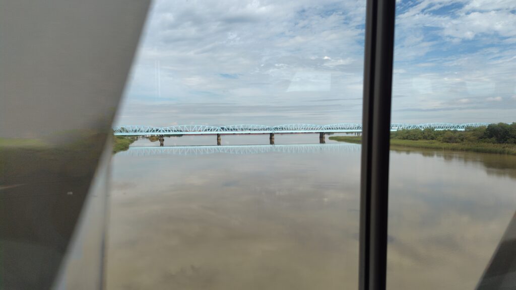 北上駅の東口から5分ほど歩くと、念願の北上川が見えてきました。春には桜で綺麗だそうです。