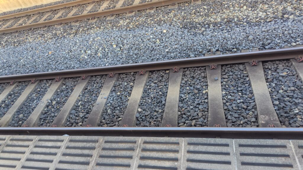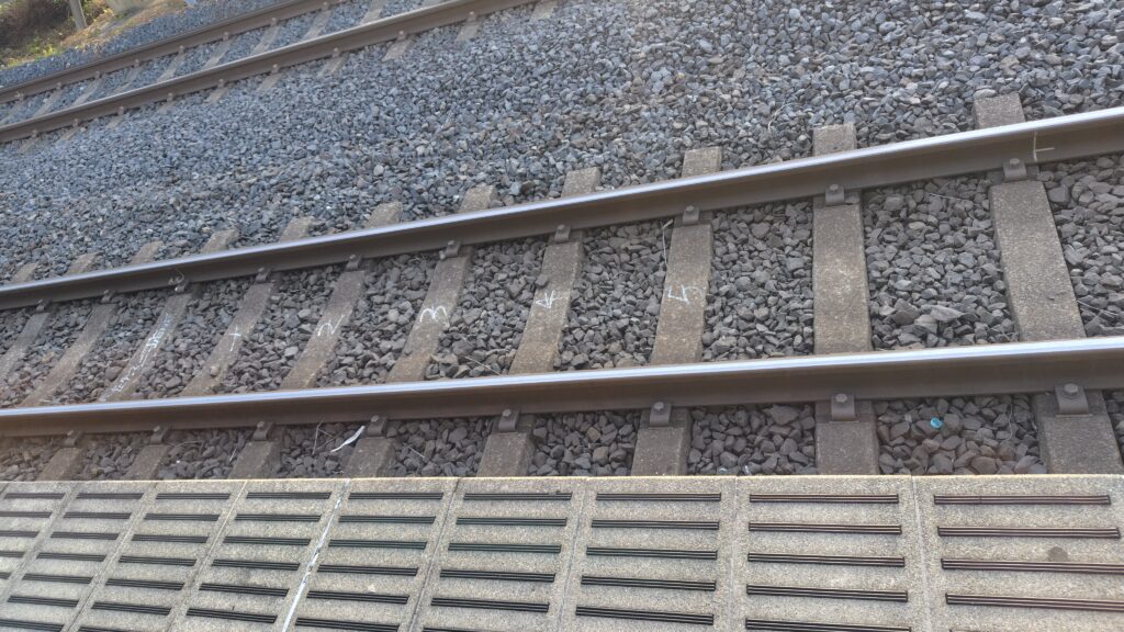 ↓下の写真のように、ホームの左右でちゃんと線路幅が違ってましたね。
