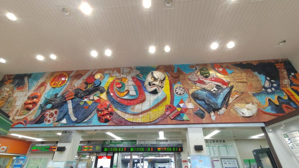 ↓北上のマンホール(左)/ 駅の壁画(右)