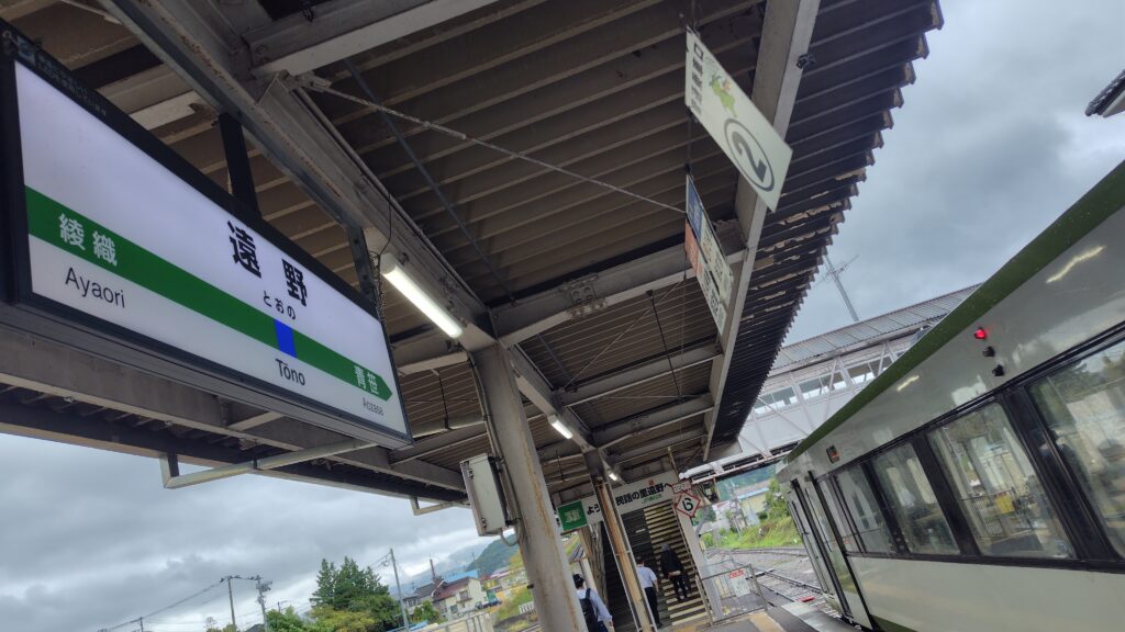 列車に揺られ森の中を通り抜け、いざ遠野へ。遠野は遠野幻想物語を読んだ中2のころから行きたかったのです。今となっては序文以外の内容はほぼ覚えてないけど (遠野物語は中2の古文習いたての時期にちょうどよかった)