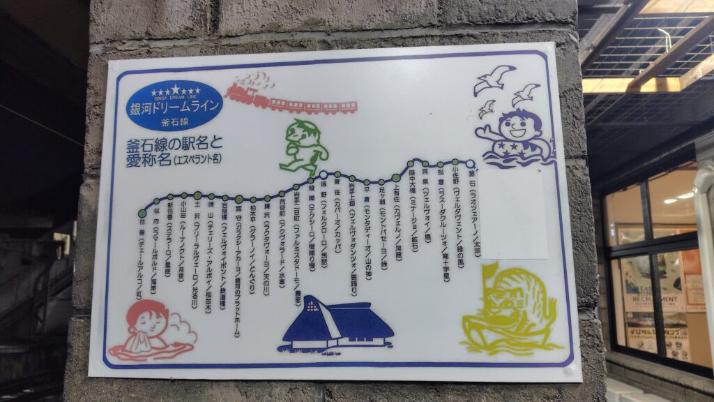↓釜石線の駅には、それぞれエスペラント語での愛称がついていました。