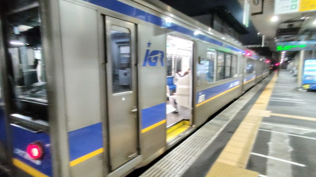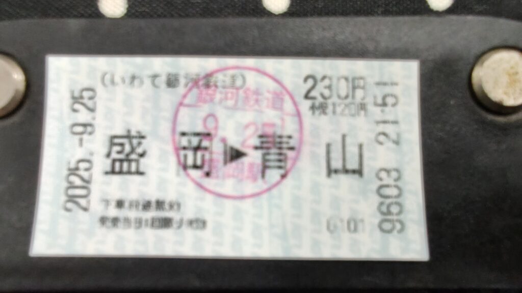 第三セクターのIGRいわて銀河鉄道に乗って、隣の青山駅まで。
