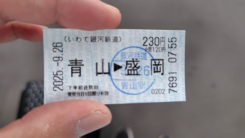 きっぷに「銀河鉄道」って書いてるハンコが押されました。いいね。