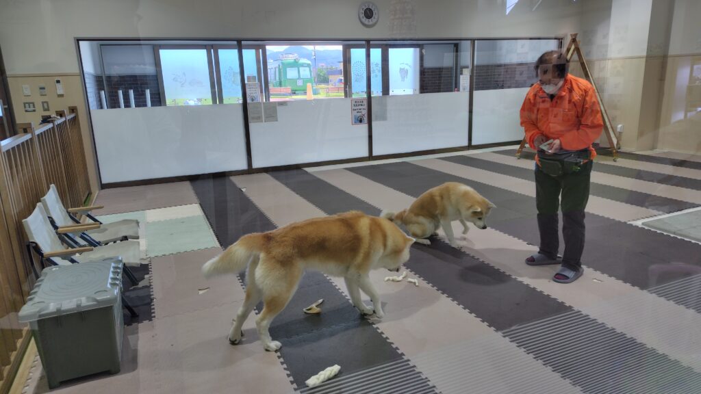 駅のすぐそばに「秋田犬の里」があったので、電車が来るまでちょっと見学。秋田犬って大きくない??