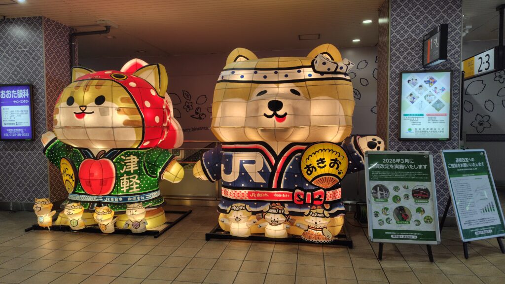 新青森駅に着くと、どこか妙に親近感を覚える人々がたくさん、スーツケースをもって乗ってきました。彼らは青森で降りると、駅の広告をパシャパシャ撮影していました。