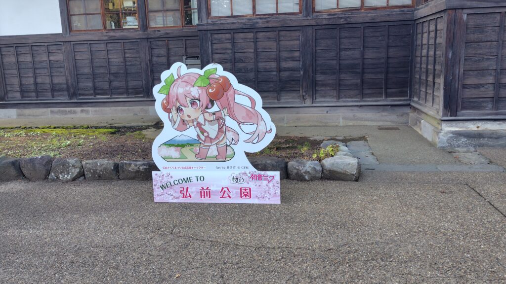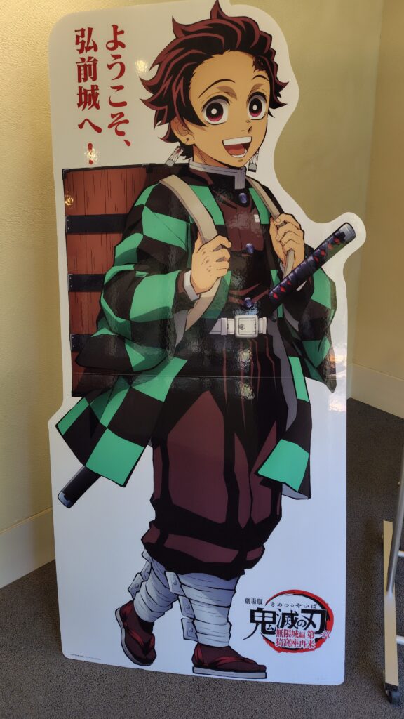 ↓鬼滅って弘前と関係あるの??(左)/弘前城でもやっぱ桜ミクちゃん(右)
