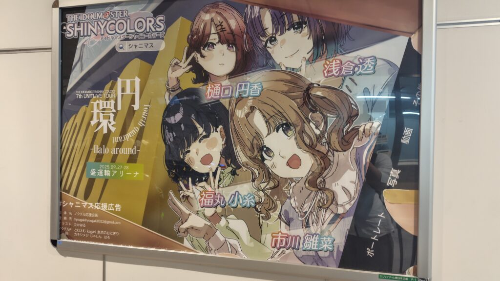 何を撮っているのだろーか、鉄道の広告かしら、と思ってみてみると、翌日のアイマスライブ(青森開催)に合わせたファン広告でした。(わたしはプロデューサーではないのでアイマスにライブが存在することすら知らなかった…。とりあえず広告は撮ってみたものの、キャラクターも全然知らないです ごめんなさい…)