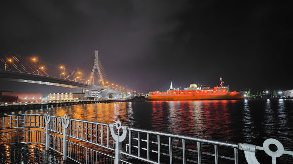 最後に港の夜景を見るかぁと思って、少し歩いて岸辺でパシャパシャ写真を撮りました。