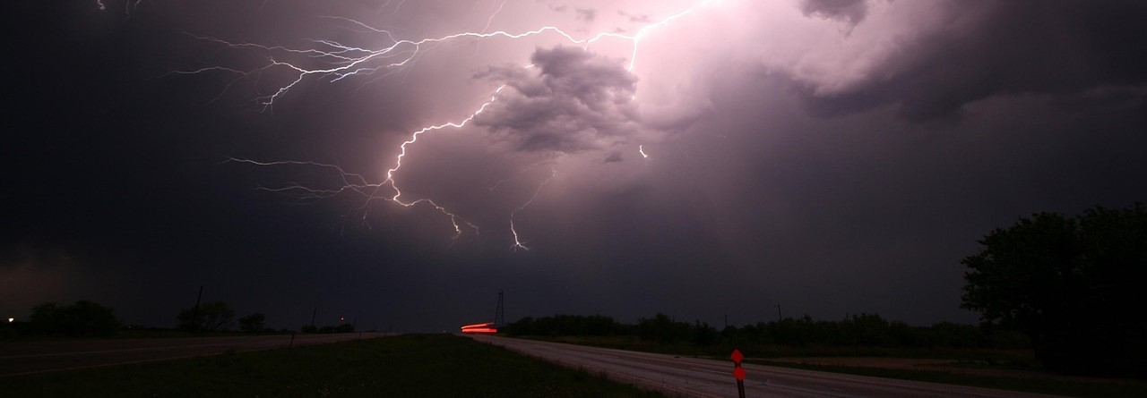 メイベリー・ヒルのふもとまではそこそこの傾斜の坂だ。この坂をガタガタと下って行った。雷が鳴り始めると瞬く間に次々と閃光が走ったが、そんな速い光り方は見たこともなかった。雷鳴も次々に続き、パチパチという奇妙な音を伴って響いた。その音は、いつもの雷の爆発するような残響音というよりは、巨大な電気機械が動いている音のようだった。明滅する光のせいで目がくらみ、混乱しパニックになった。そのうえ、坂を下っている間に突然、まばらなあられまで顔に打ち付けてきた。