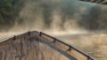 長い間、わたしは流れに舟を任せていた。さきほどの凄烈な経験を経てたいそう苦痛と疲労がたまっており、水面の上の熱もすさまじかったからだ。だがその後わたしはまた恐怖に支配され、手で漕ぐのを再開した。太陽は背中を焼くように差していた。とうとう、蛇行部を経てウォルトン橋が視界に入ると、恐怖より熱とめまいを感じるようになった。そして左岸に舟をつけ、死ぬほど気分が悪くなって、長い草の中に倒れこんだ。そのときは午後4時か5時ごろだったと思う。わたしはすぐに立ち上がり、誰にも会うことなくおそらく半マイルほど歩き、生垣のかげでまた倒れこんだ。倒れる間際、ふらふらしながら、自分に何か語り掛けたような気もする。また、とてものどがかわいており、どうしてあれだけしか水を飲まなかったのかと苦々しく後悔した。ターちゃんに怒りを感じたのは不思議なことだ。その理由の説明はできないが、レザーヘッドにたどり着きたいという実現不可能な願いのせいで、過度に不安になっていた。