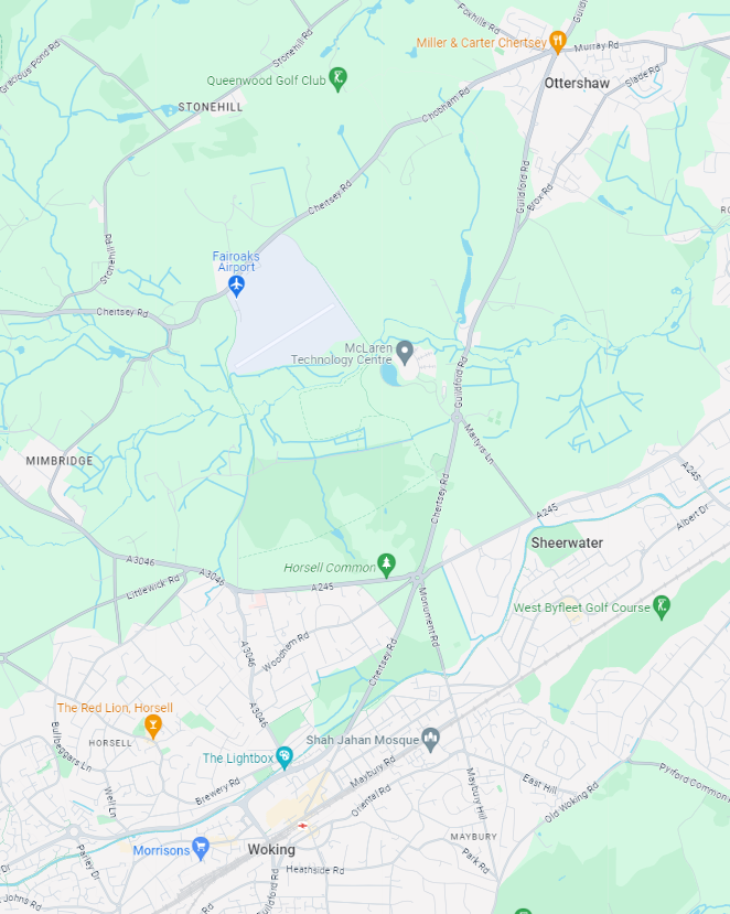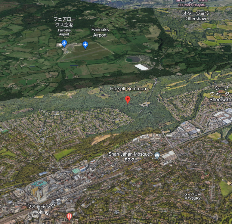 今回の舞台「Horsell Common」は、21世紀の技術を使うとこんな感じ。