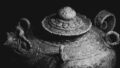 でもかわいそうなオギルヴィーナちゃんは流星を見て、ホーセル・オターシャウ・ウォーキングの間の共有地のどこかに隕石があると信じていた。だからオギルヴィーナちゃんは朝早くから隕石を見つけようと思って早起きした。そして夜明けのすぐ後、砂地から遠くはないところでそれを見つけたんだ。巨大な穴が宇宙船の激突によってつくられていた。ヒースが咲く野原のあたり一面に荒々しく砂利が散乱していて、1.5 マイル離れたところからも見える丘をつくっていた。ヘザーの丘は東方へ向かって燃えていて、細い青煙が夜明けの空を背景に立ち上っていた。