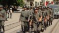 突然ドーン・シューという音が聞こえ、林に火がついて閃光が放たれるのを見て、びっくりした人々は少しの間ためらいがちに右往左往しているようだった。火花と燃える小枝が道に落下しはじめた。そして一様な葉っぱも、一筋の炎のように吹かれて舞っていた。帽子と洋服には火がついた。そのとき、共有地から悲鳴が上がった。金切声と叫び声がした。突然、手を頭の上で握りしめ、叫びながら、騎馬警官がギャロップで混乱の中を駆け抜けてきた。