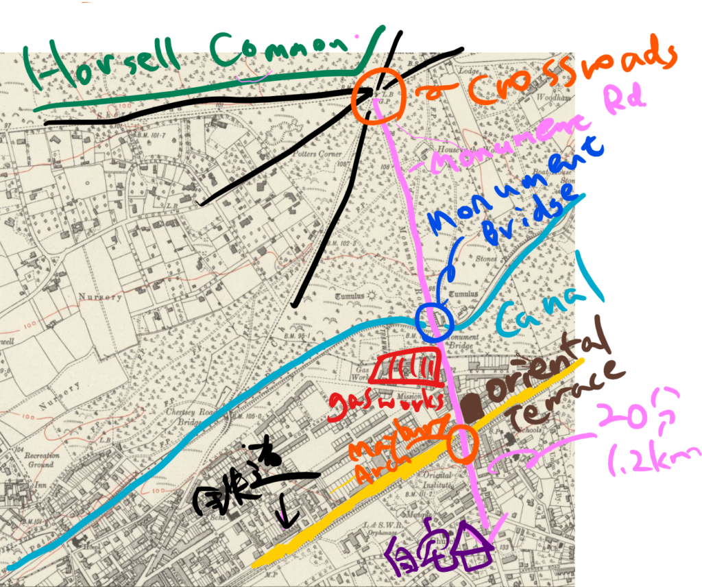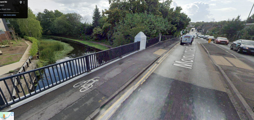 なるほど。第31話(行きの話)で、「Ottershaw Bridge」を通ったって書いてるけど、このMonument Bridgeの別称だったのね。たしかに、Ottershawに向かうところにあるわね。