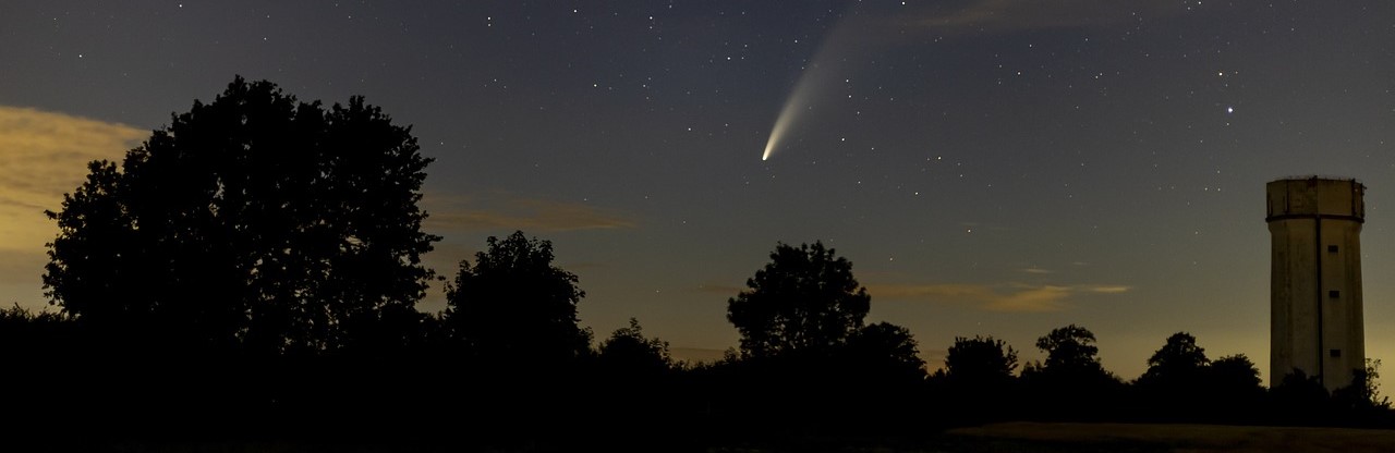 (A few seconds after midnight) the crowd 〈in the Chertsey road, Woking〉, saw a star fall (from heaven) (into the pine* woods to the northwest). It had a greenish colour, and caused a silent brightness like summer lightning*. This was the second cylinder.