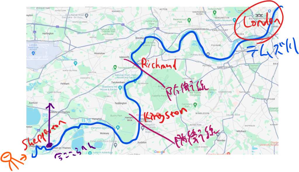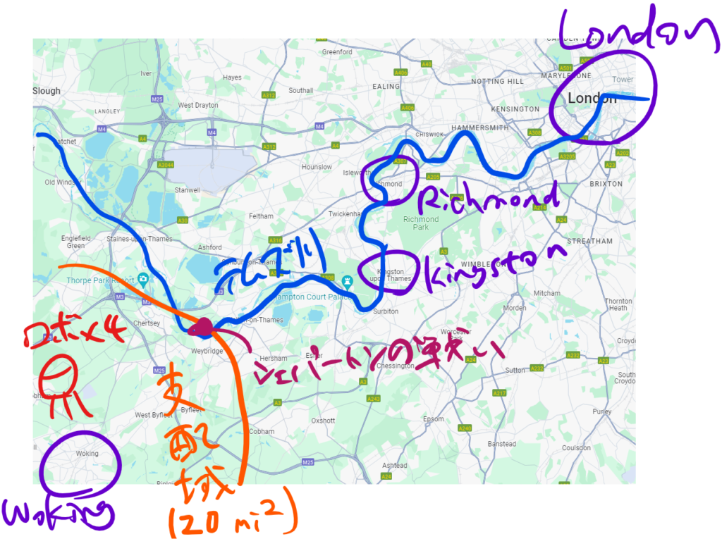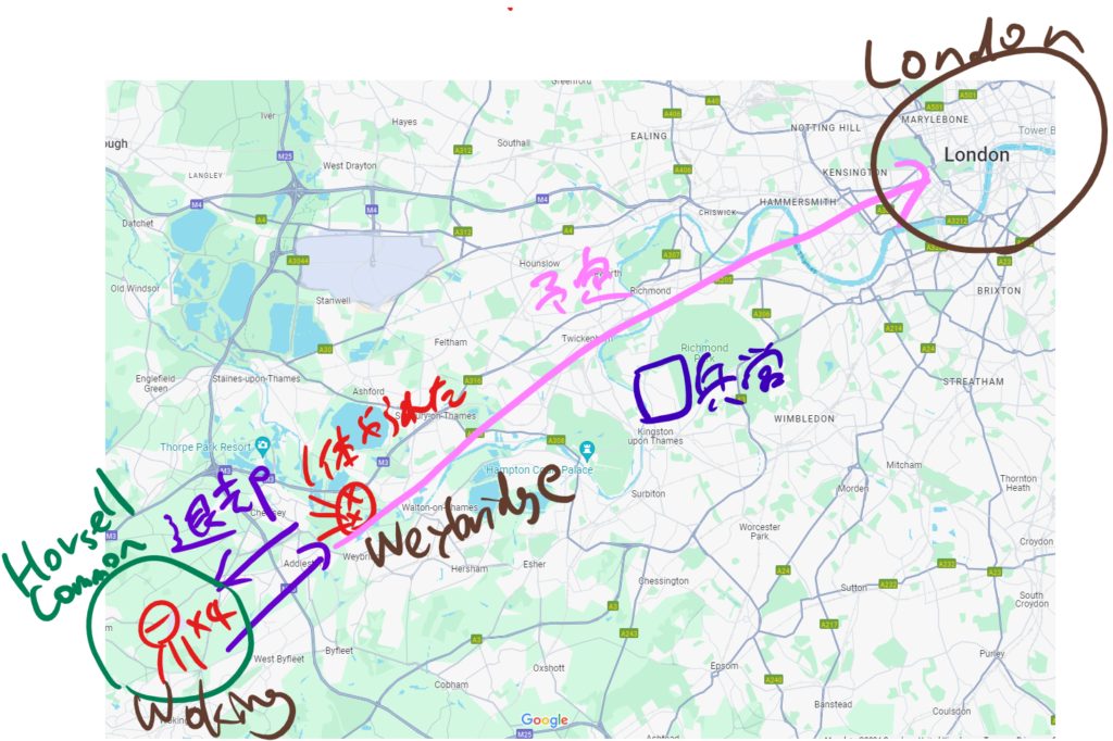 ロンドン方面に進撃する火星軍と、テムズ川沿いに防衛線を築くイギリス軍の間に二人はいるわけだね!巻き込まれないようにするために、北の方へ逃げて行こうとしてるってことかな。