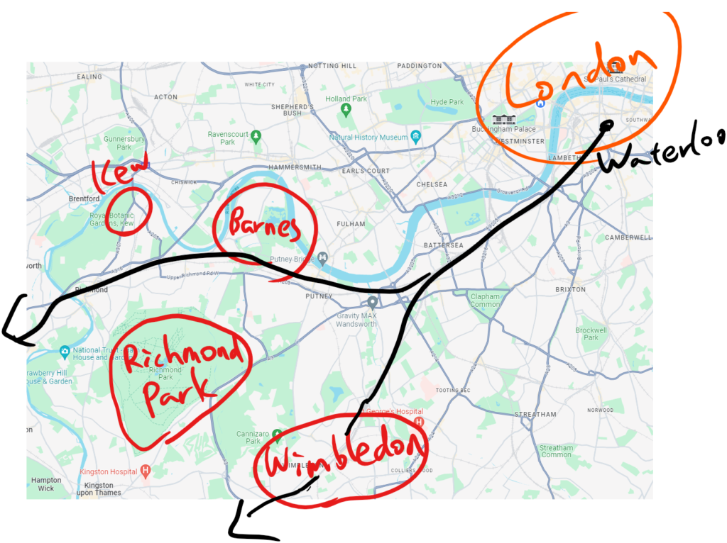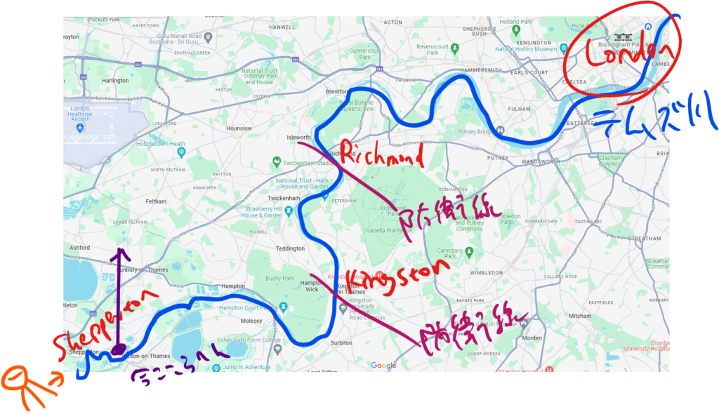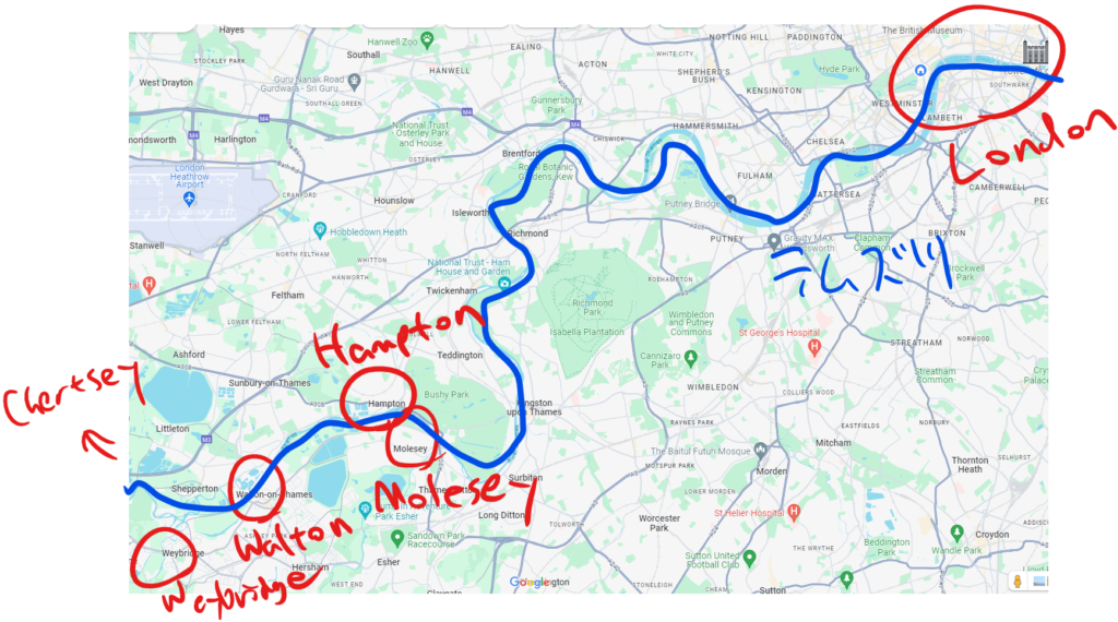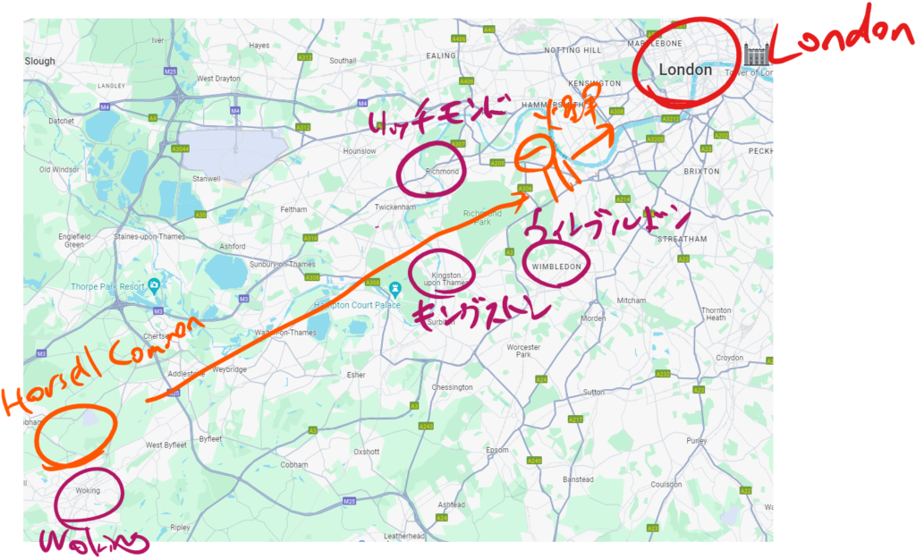 もう何回も出てきましたけど、リッチモンド・キングストン・ウィンブルドンの位置はこんな感じですにゃ。