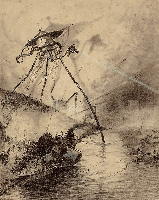 「driver」は馬車のドライバーだから古い言葉で言うところの「御者」だ。たぶんこっちの方がいいのかな。ただ、この世界線では21世紀っぽく「運転手」にしておく。Heat-Rayを熱線じゃなくてレーザー光線って書いてることもあるけど、なるべく臨場感を持ちたいからな。
