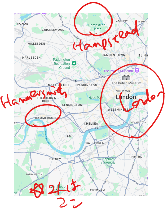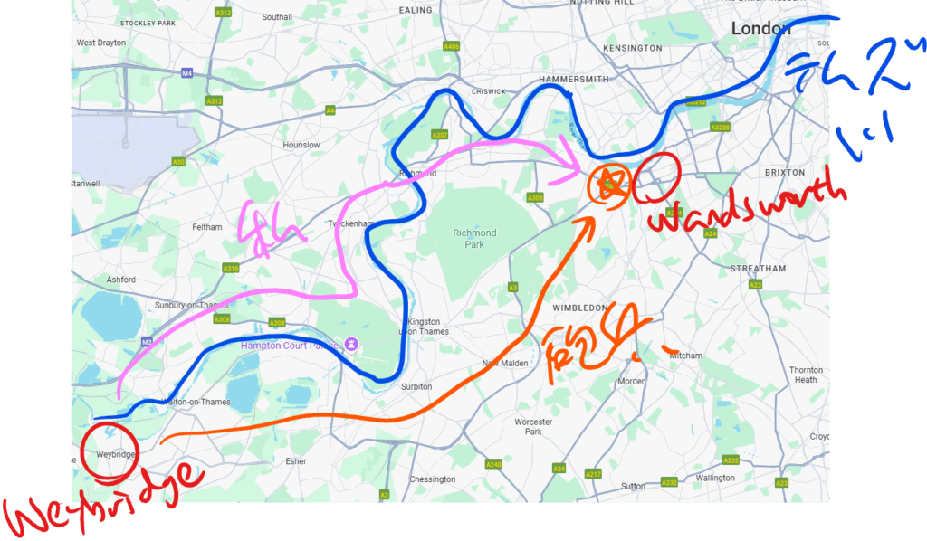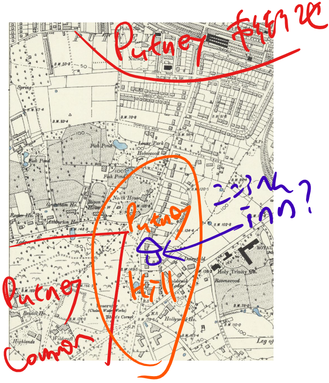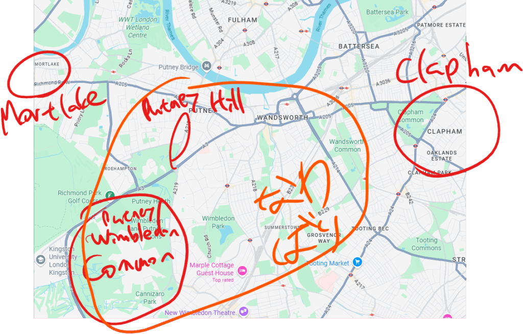 地図はこちら。Putney CommonとWimbledon Commonは一続き(同じ)なのかな。