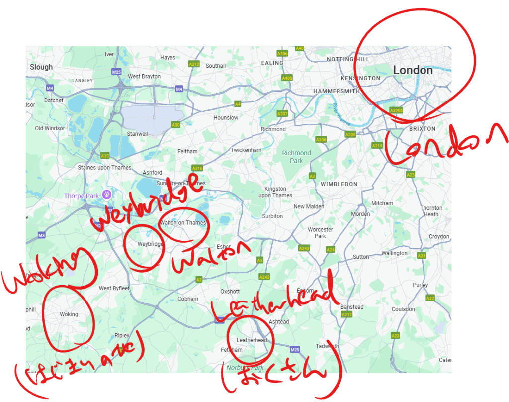 “I’ve no wish to stop about here,” said I. “I think I shall go to Leatherhead, 【for my wife was there】.”